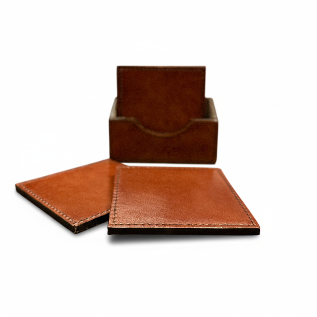 Premium square leather coaster crafted with exquisite detail, offering elegant surface protection and timeless charm—perfect for upscale homes and sophisticated entertaining. Durable, stylish, and functional.