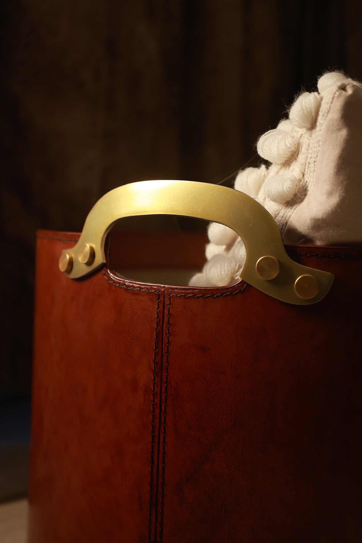 Beautifully handcrafted from supple leather, this basket offers more than storage—it brings soulful character to your home. With its warm tones and natural patina, each piece tells a story of craftsmanship and quiet luxury. Though originally designed as a laundry basket, its versatile shape makes it perfect for storing linens, firewood, or even as an elegant toy bin.